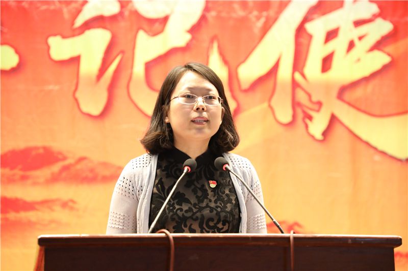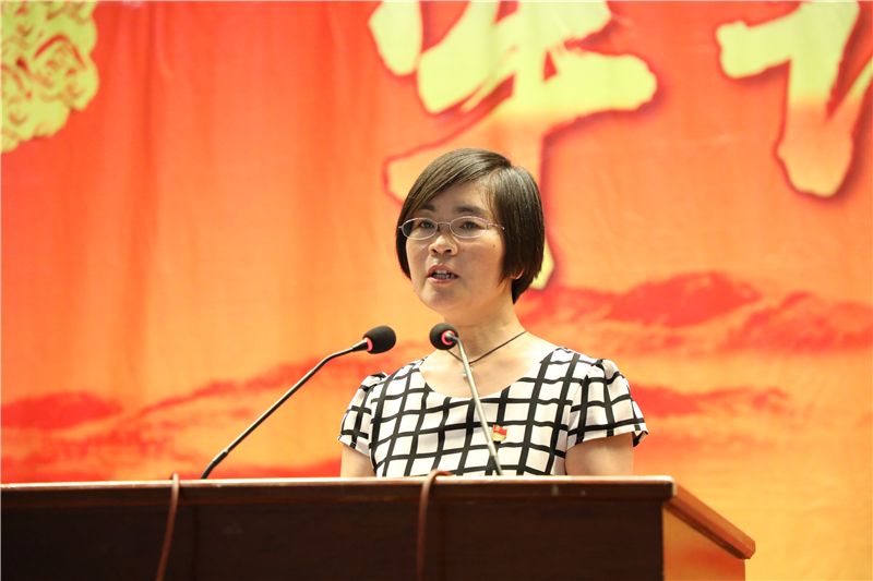 先進黨員代表經濟管理學院市場營銷專業教研室主任龐愛玲同志進行事跡分享