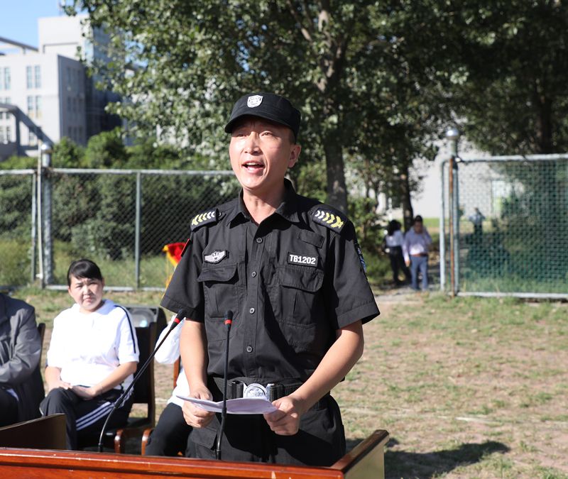 黨委委員、辦公室主任吳玉倫代表學校作了講話。焦作市金盾保安培訓學校校長秦凌風,受訓新生代表信息工程學院鄭婉瑩同學分別發言。