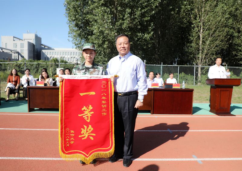 校長鄭廣華為軍訓工作先進集體獲獎學院頒發了錦旗。外國語學院榮獲一等獎,藝術學院、太極武術學院榮獲二等獎,土木建筑工程學院、法律與政治學院、會計學院榮獲三等獎。