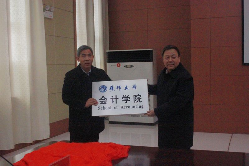 在熱烈的掌聲中,校長鄭廣華為會計學院授牌,會計學院院長盧國紅代表學院接牌。