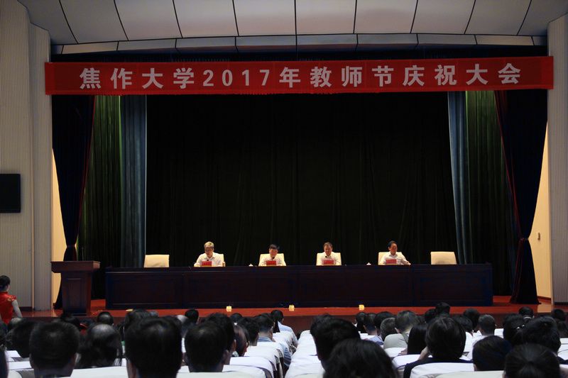 黨委副書記、校長鄭廣華以“鼓足干勁 迎難而上”為題作了重要講話。首先,他向在教育教學戰線上辛勤耕耘的全體教師、履職盡責的全體教育工作者致以節日的祝賀和誠摯的敬意。在講話中,鄭校長回顧了上一學年學校全體教職工凝心聚力、攻堅克難所取得的突出成績,2016-2017學年,我校共獲得市廳級以上集體榮譽20項、個人榮譽162人次。鄭校長對上半年及暑假13項主要工作進行了總結,并安排部署了2017下半年12項重點工作,這些重點工作包括:1.加強黨的建設;2.搞好學校宣傳;3.推進改革創新;4.提高教學質量;5.提升科研水平;6.加強招生就業;7.強化師資隊伍;8.加強學生管理;9.重視創新創業;10.推進信息化建設;11.規范行政管理;12.抓好安全穩定。鄭校長提出,下半年的目標已經明確,任務已經下達,讓我們統一思想,眾志成城,鼓足干勁,迎難而上,促進焦大發展!