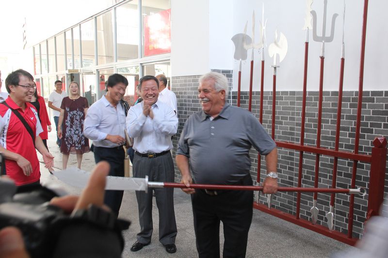 在交流過程中,喬·維達(dá)羅摩市長(zhǎng)對(duì)中國(guó)傳統(tǒng)武術(shù)產(chǎn)生了濃厚的興趣,并即興舞起了太極大刀,雙方就聯(lián)合辦學(xué)和太極拳培訓(xùn)方面進(jìn)行了初步磋商。