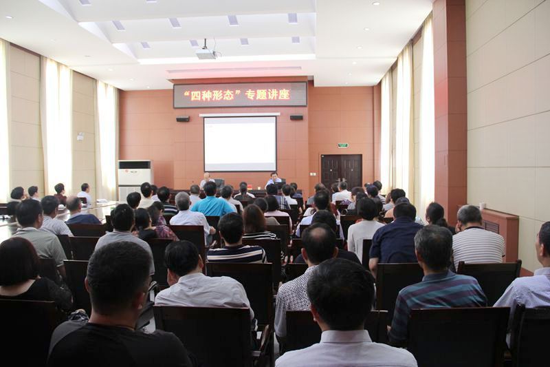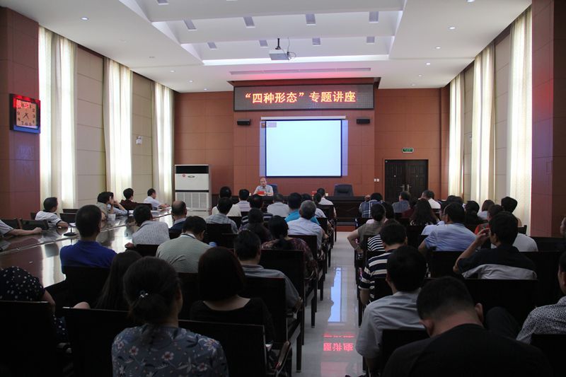 郭躍軍結合高校和省內外貪腐案件的辦理情況,運用精辟的語言、鮮活的案例、醒目的圖標,從正確認識“四種形態”、“四種形態”與遵守黨章、“四種形態”的運用三個方面,對“四種形態”的提出背景、內涵要求、與《黨章》及黨內其他法規的內在關聯、實踐運用成效等內容進行了詳細的講解。講座主題鮮明、生動形象、以案明紀、深入淺出,既有理論高度,又有思想深度,對我校實踐和運用監督執紀“四種形態”有很好的啟示和幫助。特別是他引用的一個個具體案例,有的就發生在我們身邊,是我們熟知的人和事,發人深省、令人深思,警示教育突出。