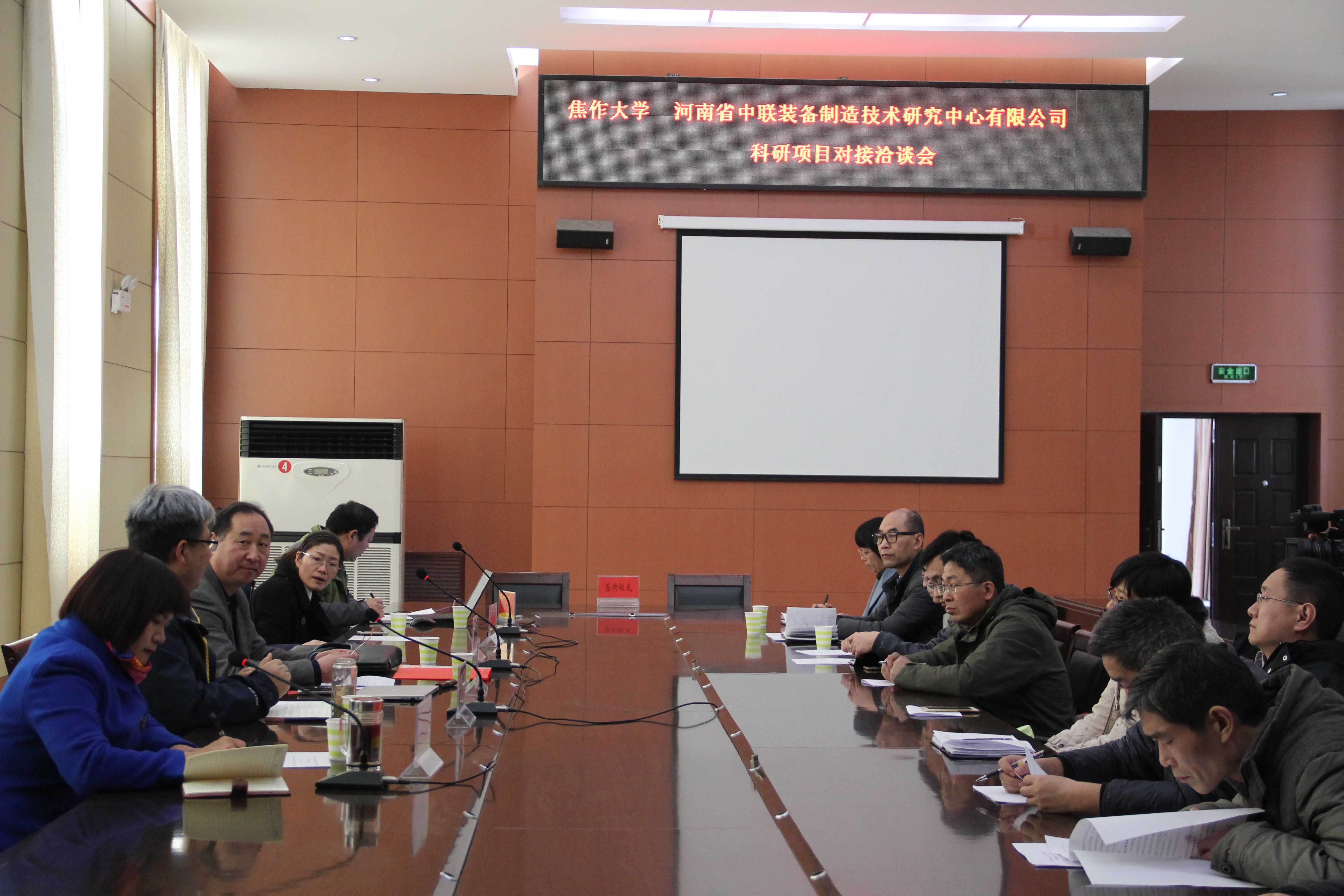 3月14日下午,焦作大學與河南省中聯裝備制造技術研究中心有限公司(以下簡稱中聯公司)產學研項目對接洽談會在我校行政樓201會議室舉行,一批來自中聯公司生產一線和技術前沿的攻關課題被我校機電學院有關科研團隊承接,我校大力推進校企合作、服務地方經濟建設的工作取得重要突破。