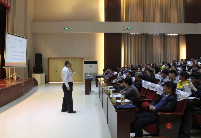 4月21日上午,我校舉辦學習《關于新形勢下黨內政治生活的若干準則》報告會,邀請紅色管理培訓知名專家簡振新教授為我校黨員干部及入黨積極分子作專題黨課輔導,并就當前中國軍事安全形勢進行解讀。校黨委書記魏曰高,副校長符德學、申文波,紀委書記張浦,副校長霍曉麗出席會議。校黨委副書記、副校長楊家卿主持會議。學校300余名黨員干部及入黨積極分子參加報告會。