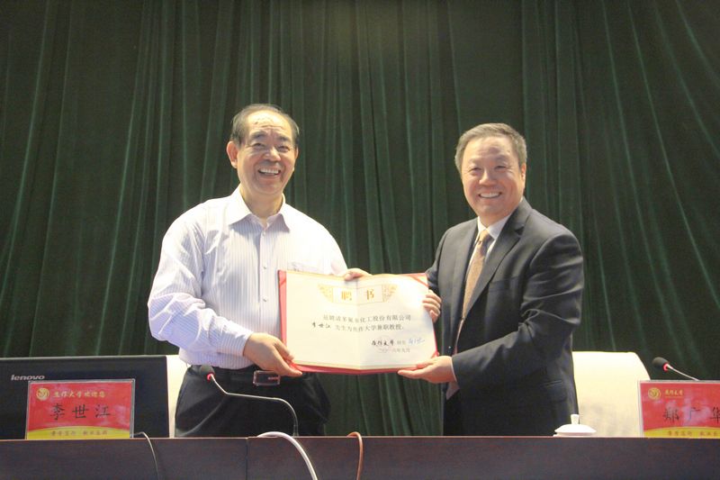 之后,在我校南校區學術報告廳,校長鄭廣華為李世江頒發聘書,聘請李世江為焦作大學的兼職教授。隨后,李世江作了題為“走進多氟多多氟多是一所大學校”的精彩報告。校領導、學校所有中層干部及部分學生300余人聆聽了報告。報告會上,他簡要回顧了自己從實干家到企業家、知本家、慈善家的人生歷程,介紹了當前“互聯網+”、“新能源+”引領時代發展的潮流,闡述了多氟多公司產業鏈之路、創新之路和資本運作之路,對校企合作的未來寄予厚望。