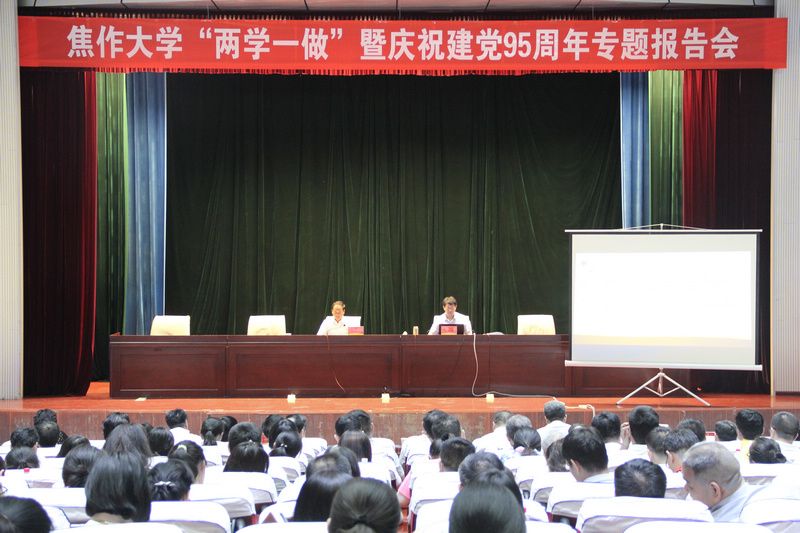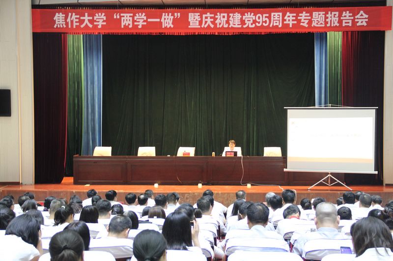 在慶祝中國共產黨成立95周年之際和深入開展“兩學一做”教育的重要時刻,6月17日,焦作大學黨委副書記、副校長楊家卿教授在學術報告廳作了“準確理解和把握‘兩學一做’的主要精神”專題報告。既是一次校黨委中心組理論學習擴大會,又是對全校黨員一次專題黨課。