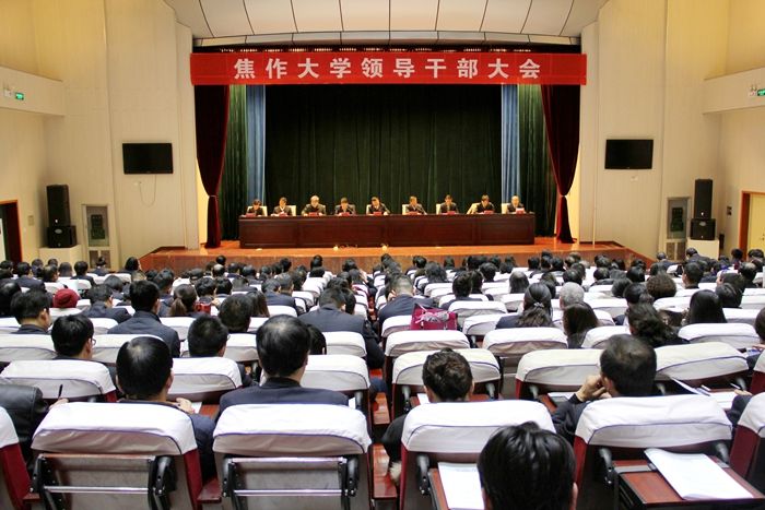 校黨委書記魏曰高作了題為《強化五種意識 推進五化建設 努力實施焦作大學轉型發展》的重要講話。他強調,當前學校處于轉型發展的關鍵時期,我們要解放思想,轉變觀念,當務之急是要強化憂患意識、創新意識、法治意識、合作意識、服務意識,推進專業建設特色化、教學活動信息化、管理行為規范化、環境建設生態化、黨建加強常態化建設。工作安排得再好,講得再好,不落實都等于零。我們要凝心聚力抓落實、強化責任抓落實、突出重點抓落實、認真具體抓落實、強化督查抓落實。凝心聚力必須把思想統一起來,統一到焦大的目標定位上:建設特色鮮明的應用型技術技能型大學;統一到焦大的發展思路上:人才立校,法規治校,合作建校,特色發展;統一到轉型發展上:服務地方經濟社會發展,校企合作、產教融合、工學結合,培養高素質技術技能型人才,增強學生的創業就業能力。統一到工作要求上:凝心聚力、自強不息、轉型攻堅、提升規范,不斷推進科學發展。強化責任必須貫穿到工作落實的全過程,首先要明確責任。每一個人對自己在本職崗位上承擔的任務,心里要有數,就是要有責任心。其次要落實責任。誰分管的工作,誰就要負第一責任,誰就要把它干好,做到敢于負責、敢于擔當。突出重點要求把五化”建設作為當前和今后一個時期的重點工作,突出重點專業建設,不能放松;突出招生工作,不能有絲毫馬虎;突出增收節支,不能盲目增加新的債務;突出“三定”工作,不能有畏難情緒;突出作風建設,不能獎罰不明。認真具體首先要抓好細節,細節決定成敗。其次要緊盯不放,抓而不緊,等于不抓。我們干任何事情,都必須有咬定青山不放松的韌勁,不達目的不罷休的拼勁,一竿子插到底的鉆勁,努力做到緊盯不放、緊抓不舍、緊抓不松,以快的節奏、高的效率、扎實的舉措確保工作任務完成。強化督查就是要將督查與解決問題結合起來,就是要將督查與嚴格考核結合起來,就是要將督查與嚴格獎懲結合起來。全校上下要繼續深化“我的崗位與焦大發展大討論”活動,開展“我的崗位與焦大發展實踐”活動,自強不息,努力工作,推進焦作大學工作落實年建設。