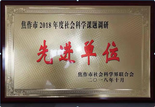 因成績顯著,我校被焦作市社會科學界聯(lián)合會評為 “焦作市2018年度社會科學課題調(diào)研先進單位”。