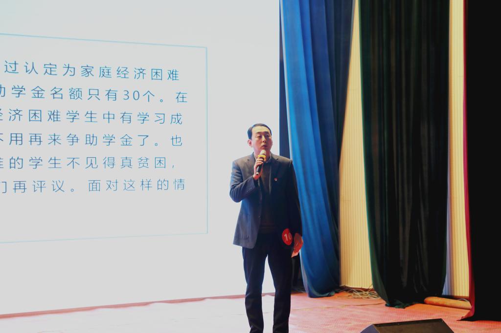 本次大賽分為初賽和決賽,初賽已于12月10日以筆試方式進(jìn)行,重點(diǎn)對(duì)輔導(dǎo)員的基礎(chǔ)理論知識(shí)和網(wǎng)文寫作能力進(jìn)行測(cè)試,經(jīng)過匿名閱卷和嚴(yán)格評(píng)審,共有10名輔導(dǎo)員以優(yōu)異的初賽成績(jī)進(jìn)入本次決賽。決賽共分理論宣講、談心談話和案例分析三個(gè)環(huán)節(jié),全面考察了輔導(dǎo)員的思想政治理論素質(zhì)、職業(yè)能力和專業(yè)素養(yǎng)。最終藝術(shù)學(xué)院閃群超、人文學(xué)院高婷婷榮獲一等獎(jiǎng);藝術(shù)學(xué)院紀(jì)詠宜、經(jīng)管學(xué)院司文杰、人文學(xué)院王毅峰榮獲二等獎(jiǎng);會(huì)計(jì)學(xué)院鐘丹、信息工程學(xué)院趙芝、會(huì)計(jì)學(xué)院王小愛、會(huì)計(jì)學(xué)院劉倩斐、藝術(shù)學(xué)院李清榮獲三等獎(jiǎng)。藝術(shù)學(xué)院、會(huì)計(jì)學(xué)院、人文學(xué)院榮獲本次大賽優(yōu)秀組織獎(jiǎng)。校黨委書記魏曰高、副校長(zhǎng)符德學(xué)、學(xué)生處處長(zhǎng)李存紅分別為優(yōu)秀組織獎(jiǎng)、一等獎(jiǎng)、二等獎(jiǎng)、三等獎(jiǎng)選手頒發(fā)了獲獎(jiǎng)證書。
