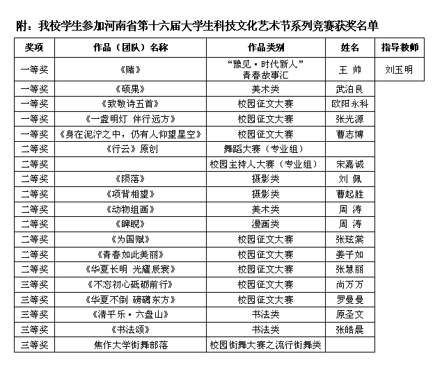 我校在河南省第十六屆大學(xué)生科技文化藝術(shù)節(jié)中喜獲多項榮譽