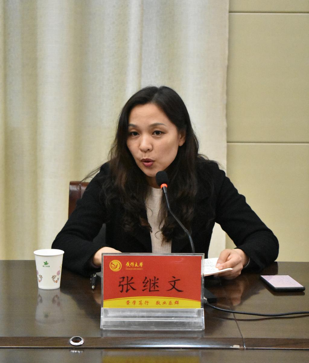 團市委學(xué)校部部長董紅霞傳達習(xí)近平總書記參加河南代表團審議時的重要講話精神。