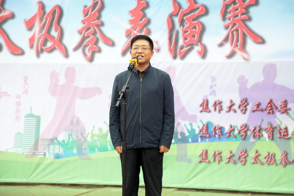 黨委書記魏曰高宣布焦作大學教職工第三屆太極拳表演賽開始