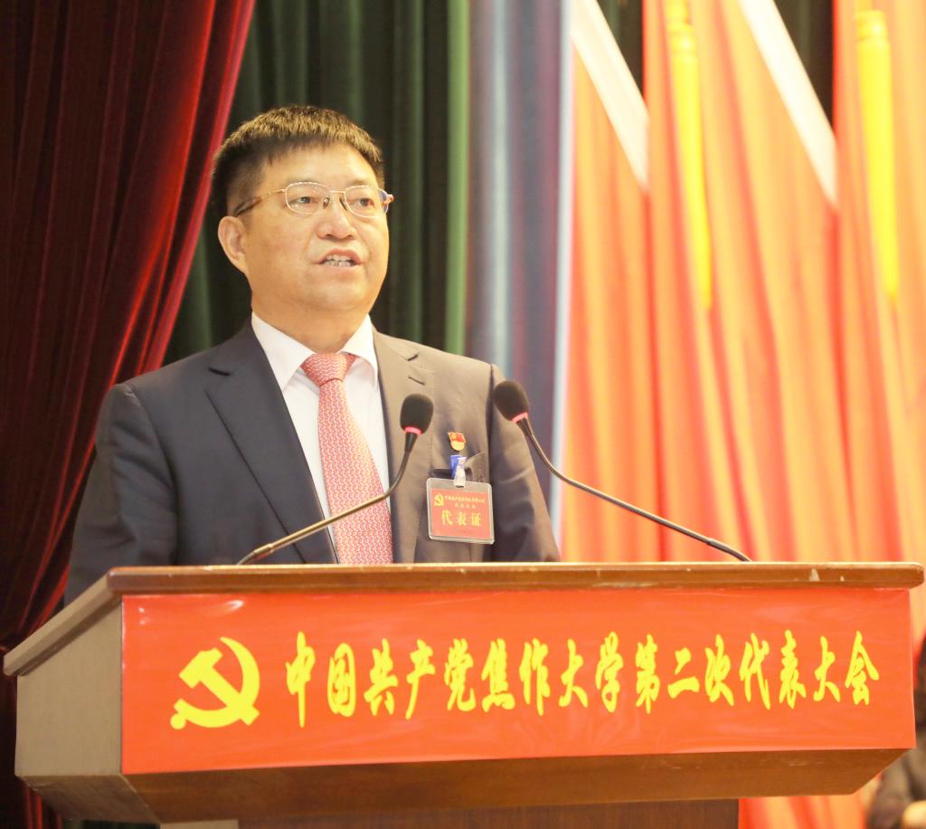 高治軍代表河南省委高校工委、省教育廳黨組,向大會的召開表示熱烈祝賀!向各位代表和全校師生員工致以誠摯問候!他說,自中共焦作大學第一次代表大會召開以來,校黨委認真學習貫徹習近平新時代中國特色社會主義思想和黨的十九大精神,全面貫徹黨的教育方針,堅持社會主義辦學方向,解放思想,搶抓機遇,真抓實干,艱苦奮斗,黨的建設全面加強,內涵建設持續推進,辦學實力顯著提升,內部治理更加高效,向著實現建設特色鮮明的應用型大學的奮斗目標前進。他指出,焦作大學正處在可以大有作為的重要戰略機遇期,開好這次黨代會,對于學校開啟應用型大學建設新征程、開創學校黨建和思想政治工作新局面,具有十分重要的意義。希望各位代表認真履行黨員代表義務,正確行使民主權力,選舉好焦作大學新一屆黨委、紀委,充分發揮主人翁精神,獻計獻策,共謀發展,圓滿完成大會的各項任務。高治軍對新一屆領導班子提出三點要求:一是更加突出堅持黨的領導,以黨建高質量推動學校發展高質量;二是堅持立德樹人,落實“三全育人”,努力培養社會主義建設者和接班人;三是更加突出堅持內涵發展,為我省經濟社會發展貢獻力量。高治軍強調,新一屆黨委要團結帶領全體黨員和廣大師生員工,深學篤用習近平新時代中國特色社會主義思想,擁抱新時代,踐行新思想,實現新跨越,再上新臺階,為建設教育強國和科教強省做出新的更大貢獻。省委高校工委、省教育廳將一如既往地關心支持焦作大學的改革發展,攜手共創河南高等教育新的輝煌。