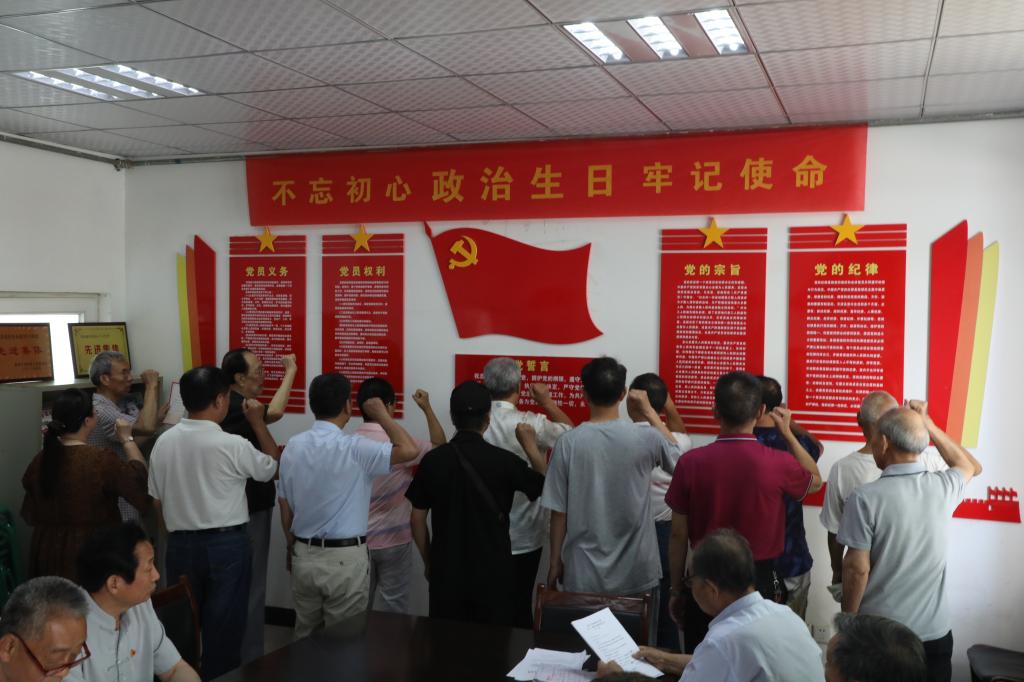 與會上半年入黨的離退休干部職工黨員集體在黨旗下重溫入黨誓詞