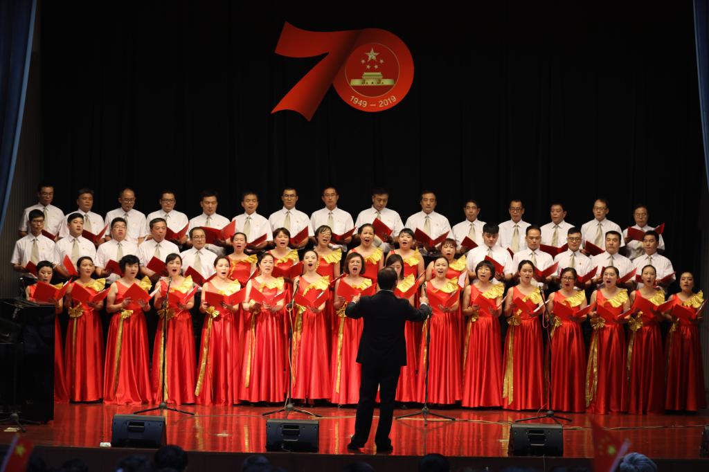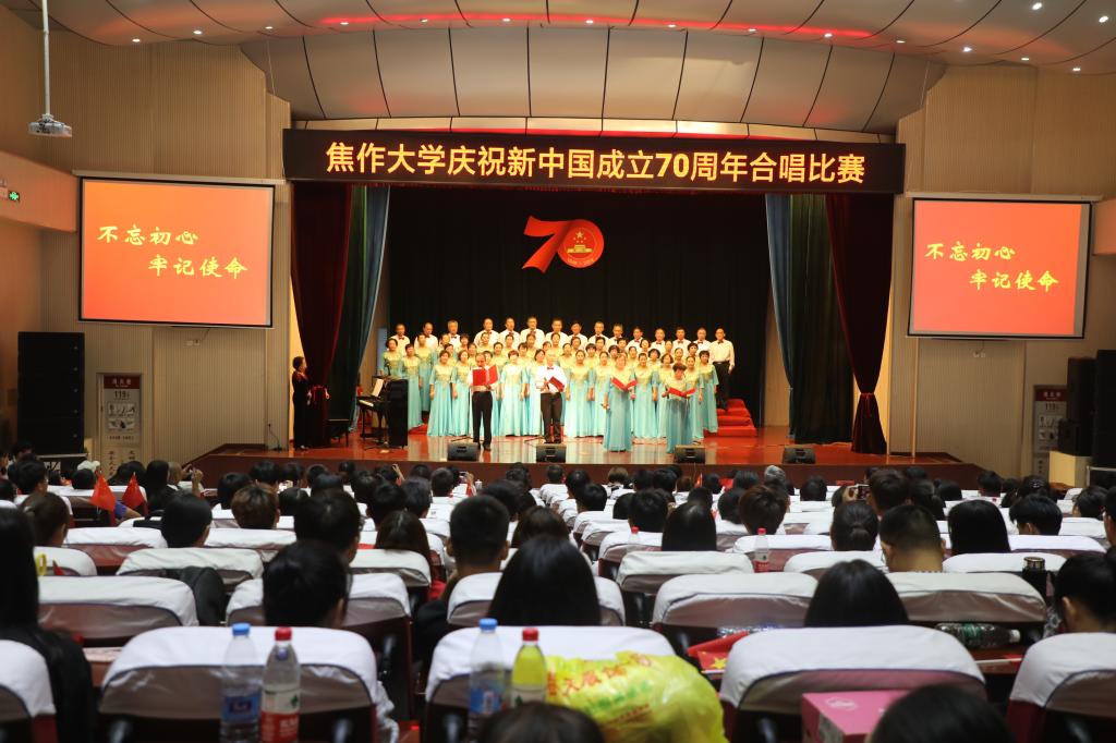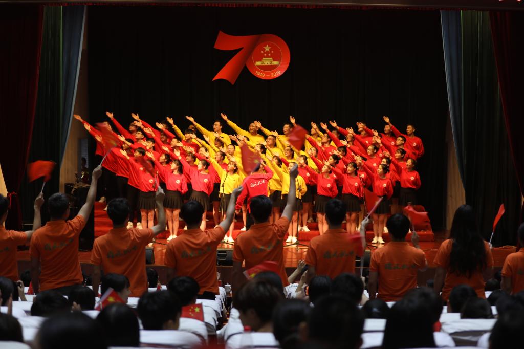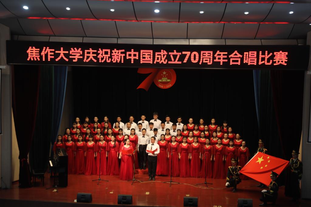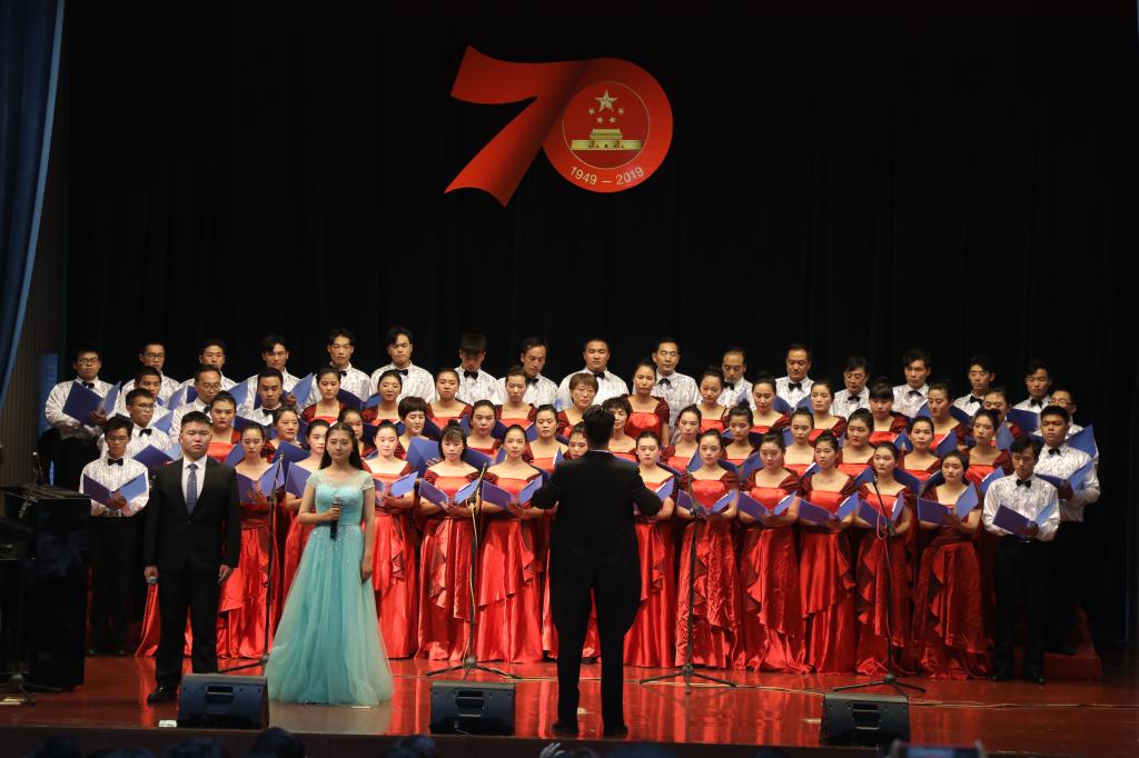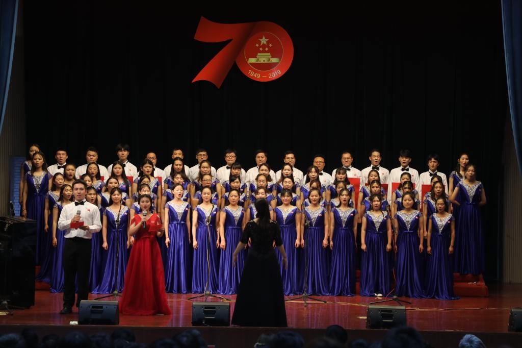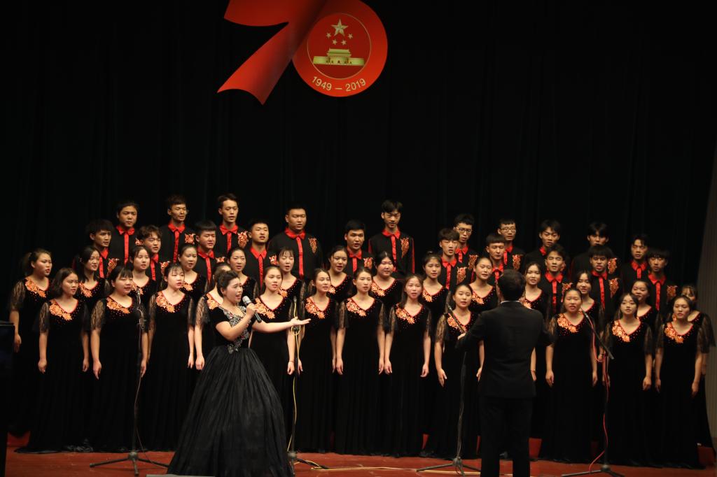 舞臺上,師生們飽滿的情緒、整齊統一的演唱服裝、豐富多彩的節目形式、動人的歌聲、真摯樸實的朗誦,令人心潮澎湃、熱血沸騰,展現了我校師生積極向上、奮發有為的精神風貌,唱出了新中國成立70周年砥礪前行的奮斗贊歌,唱出了我校師生對黨和祖國的深厚感情,凝聚起推動學校高質量發展的磅礴力量和為學校建設奮力拼搏的決心。