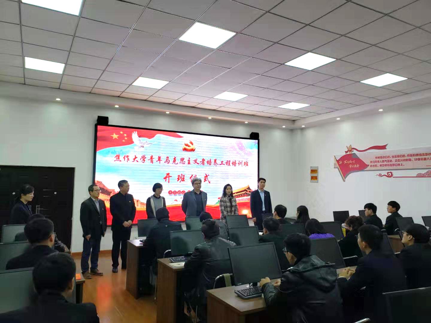 為深入學習貫徹習近平新時代中國特色社會主義思想,深入推進團中央倡導的青年馬克思主義者骨干培養工程,11月8日下午,焦作大學青年馬克思主義者培養工程培訓班開班儀式在行政樓“青年之家”舉行。黨委副書記、工會主席符德學,黨委委員、組織部長李文靜,黨委委員、宣傳統戰部長張繼文出席開班儀式,校團委全體成員、各團總支書記和“青馬工程”培訓班學員共計50余人參加。開班儀式由校團委書記趙文平主持。