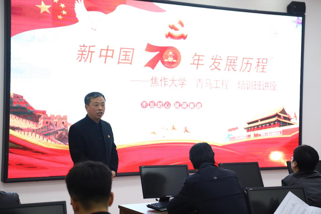 開班儀式結束后,舉行了培訓班的首場講座。校團委書記趙文平為學員們作了題為“新中國70年發展歷程”的專題講座。趙書記帶領大家一起回顧了新中國成立至今的重大歷史事件,指出新中國成立70年來,中國共產黨帶領中國人民艱苦奮斗,在經濟發展、民生改善、科技進步、制度創新等方面都取得了偉大的成就。希望大家努力學習,勇于實踐,增強本領,為實現中華民族偉大復興的中國夢貢獻青春力量。
