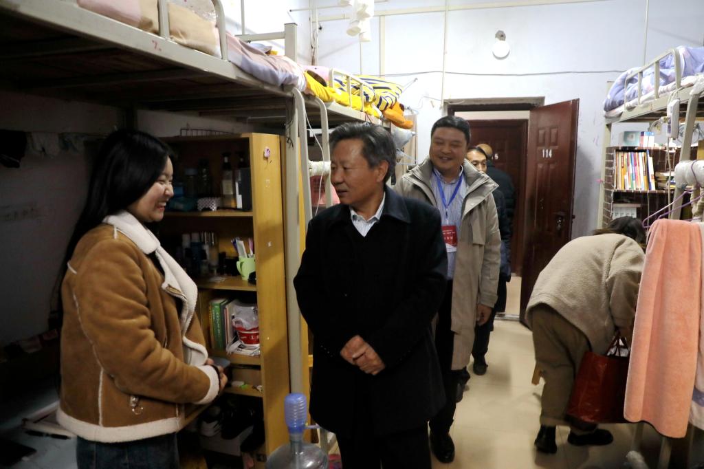 專家組深入學生公寓和學生食堂認真對標對表進行現場查驗