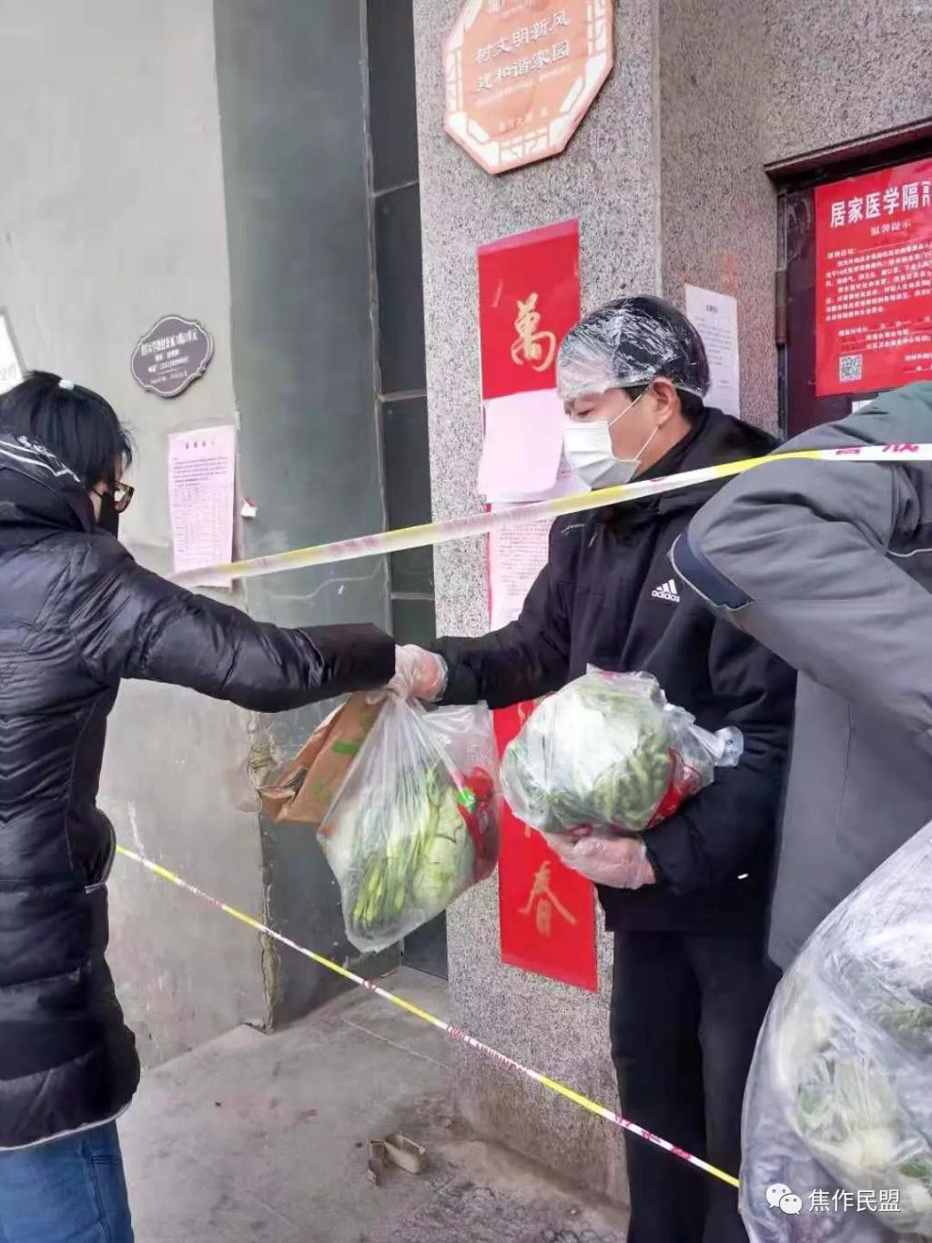 (丁富甲為社區(qū)居民送菜)