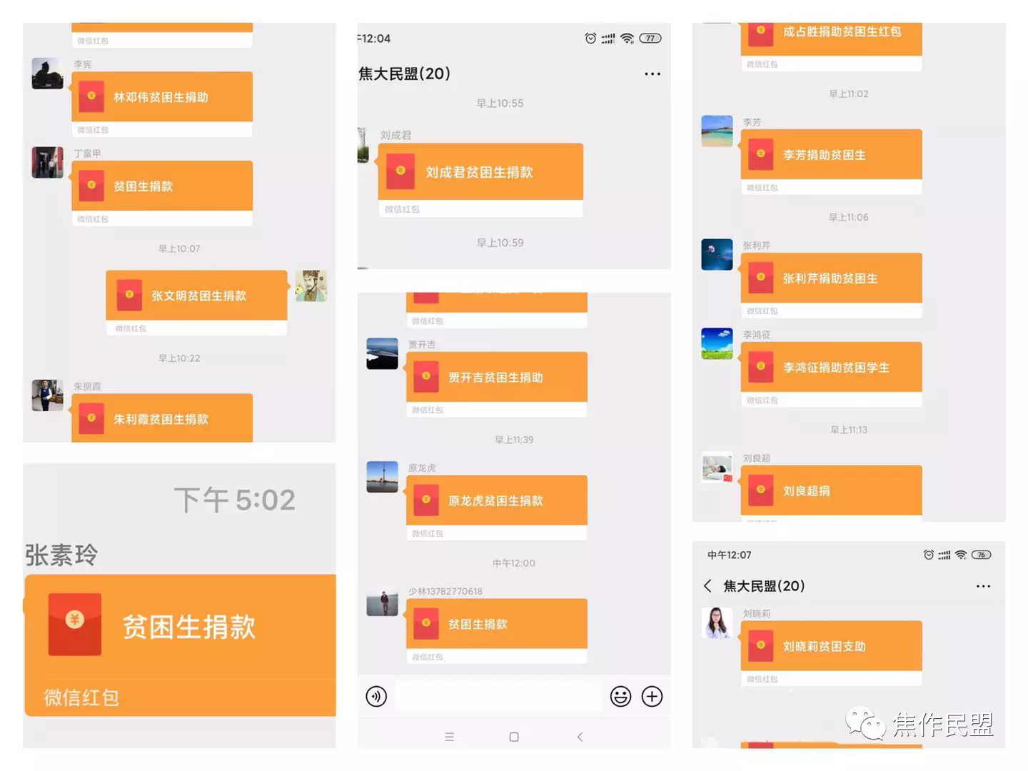 (民盟焦大支部全體盟員通過微信積極捐款)