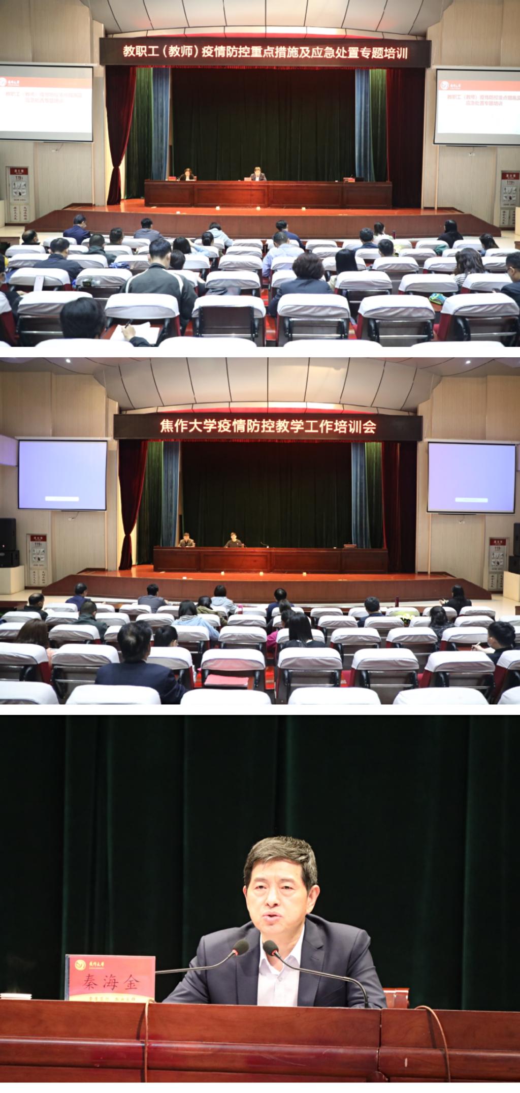 為貫徹落實(shí)黨中央、省委省政府和省教育廳關(guān)于疫情防控工作和返校復(fù)學(xué)工作的有關(guān)要求,切實(shí)做好我校開學(xué)前后的疫情防控工作,確保返校復(fù)學(xué)后教職工(教師)的安全健康和各項(xiàng)教學(xué)管理工作穩(wěn)妥有序進(jìn)行,5月9日下午,我校在南校區(qū)報(bào)告廳召開教職工(教師)疫情防控重點(diǎn)措施應(yīng)急處置專題及疫情防控教學(xué)工作培訓(xùn)會。副校長秦海金、各部門(學(xué)院)班子成員1名等人參加培訓(xùn)會,會議由人事處處長霍霄艷主持。