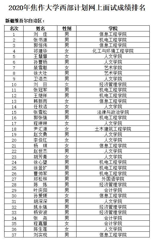 評委本著公平、公正、公開的原則,根據志愿者的服務意向,對參加西部計劃的志愿者進行排名。接下來,校團委將根據省西部計劃項目辦分配給我校的名額,按照以下排名擇優錄取,做好我校西部計劃志愿者崗位對接、體檢、培訓等后續工作。
