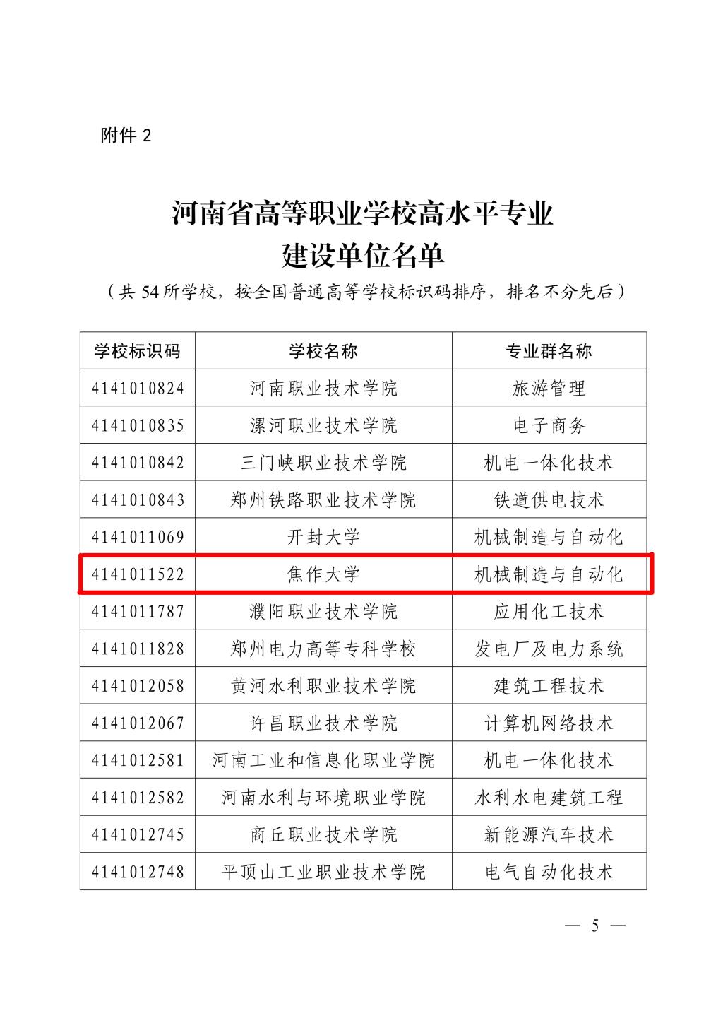 經過學校申報、焦作市人民政府審核推薦和省教育廳審核、專家“線上通訊評審”和河南省高水平高等職業學校和高水平專業建設工程評審委員會審定等環節,我校成功入選河南省高水平高等職業學校和高水平專業(機械制造與自動化)建設工程建設單位。