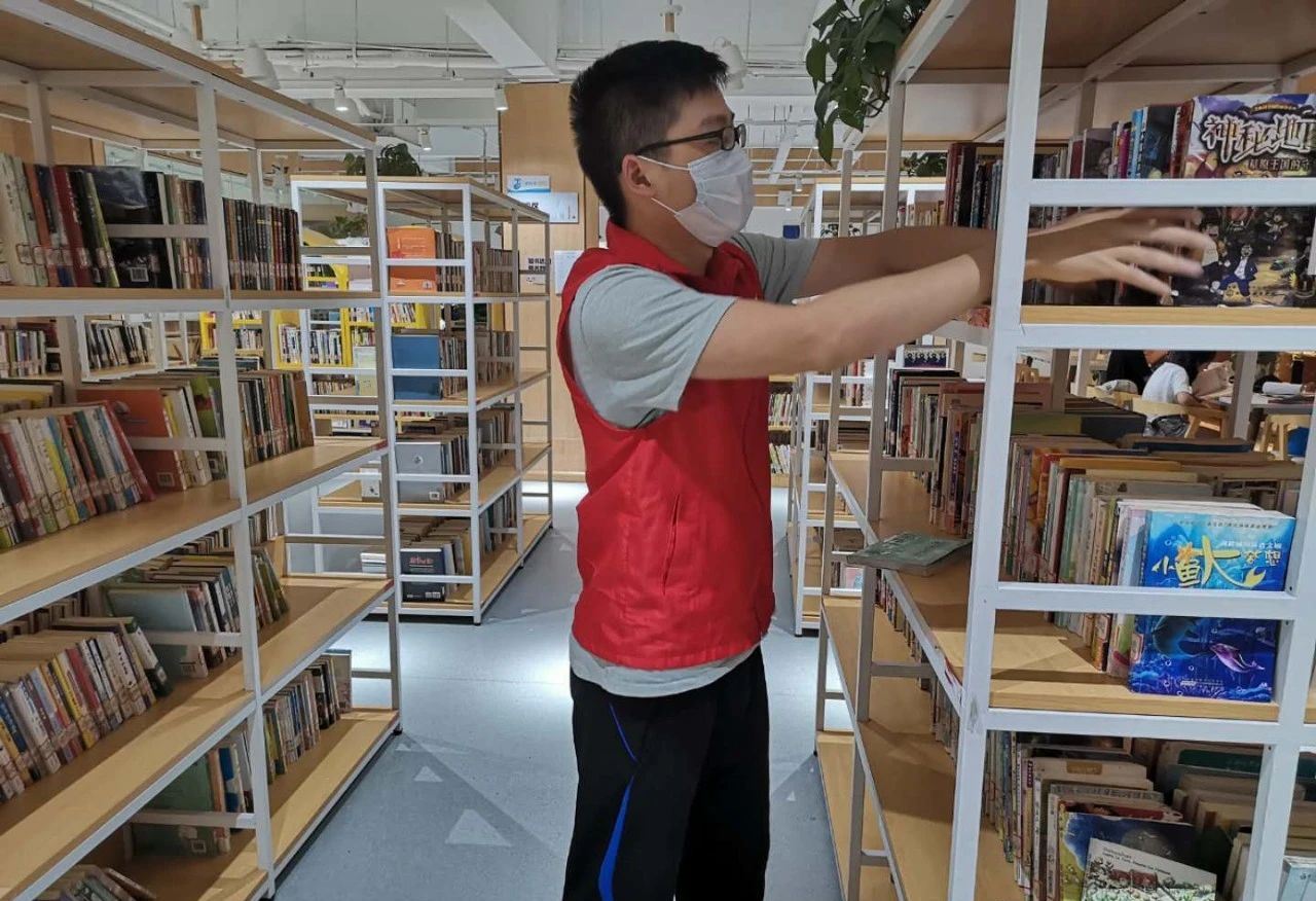實踐隊員徐曉龍每天到張洼新村悅書房開展整理書籍、打掃衛(wèi)生、場地消毒等工作。暑假來這里借書的小朋友很多,每次借閱或者還書,他都要根據(jù)書的編號逐一歸位,當發(fā)現(xiàn)有破損書籍時,需要拿給工作人員進行修補。有讀者不會使用借書機器時給予幫助。疫情防控已進入常態(tài)化,由于書房讀者較多,他每天對書房進行三次消毒,讓讀者們放心閱讀。