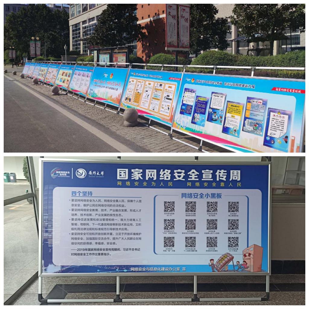此次教育活動中,學校編寫并發放網絡安全宣傳資料5300份;制作并擺放網絡安全宣傳版面12塊;室外電子屏滾動播放網絡安全宣傳標語數條;校廣播站每天播放網絡安全實用知識。9月14日上午9時,學校網信辦組織全校師生收看了國家網絡安全宣傳周啟動儀式直播。9月15日,網信辦邀請焦作市公安局網技支隊隊長武勝利來校進行網絡安全講座,并將學習資料傳送至學習平臺,供全校師生觀看學習。9月17日校團委邀請焦作市防詐中心主任郭煒來校做網絡防詐騙講座。各分工會也采取線上線下相結合的方式進行了網絡安全知識的學習。