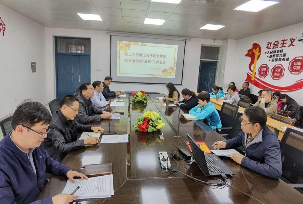 為全面落實提升“六率”、落實“十好”和深化“教學做”一體化改革等工作要求,讓教師、教室、教材、課堂和評價改革(“五項改革”)落到實處,促進化工學院教學工作上臺階上水平,10月8日-9日,化工學院召開教學工作“五項改革”學習研討會。學院全體教師參加了學習研討會。會議由化工學院院長蘇永祥主持。