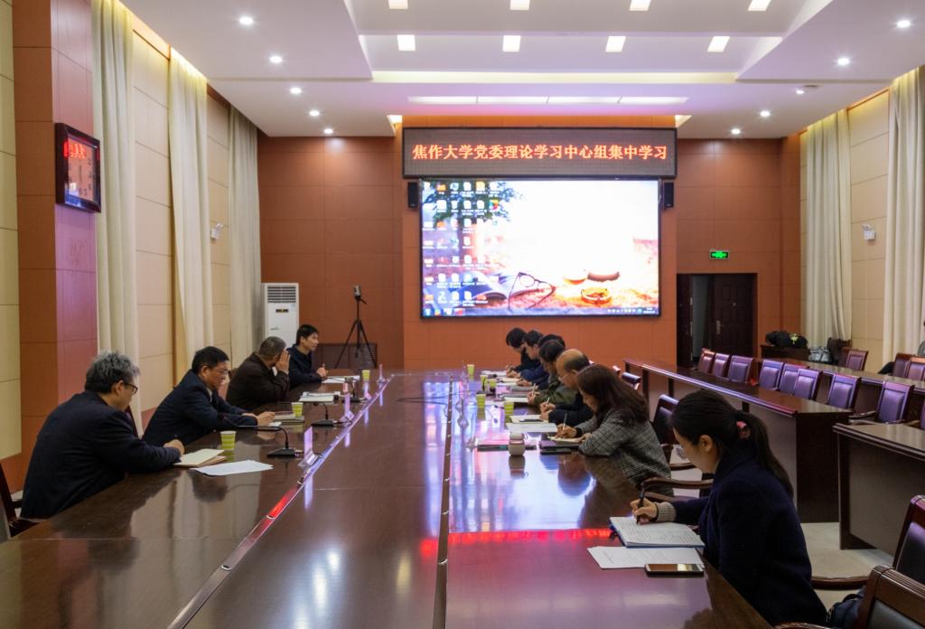 今年4月,根據省委、市委有關工作要求,學校印發了《焦作大學黨委理論學習中心組2020年理論學習安排意見》,對進一步促進理論學習提質增效、落實第一議題制度和建立健全中心組學習巡聽旁聽工作機制進行了具體安排。今年九月,又下發了《關于開展雙周政治理論學習的通知》。學校黨委理論學習中心組通過領學、領導講學、觀看視頻、收看直播等學習形式,共開展第一議題學習二十余次,對4個基層黨總支理論學習中心組學習開展了巡聽旁聽。目前,圍繞十九屆五中全會精神的學習正在全校范圍內有序推進。