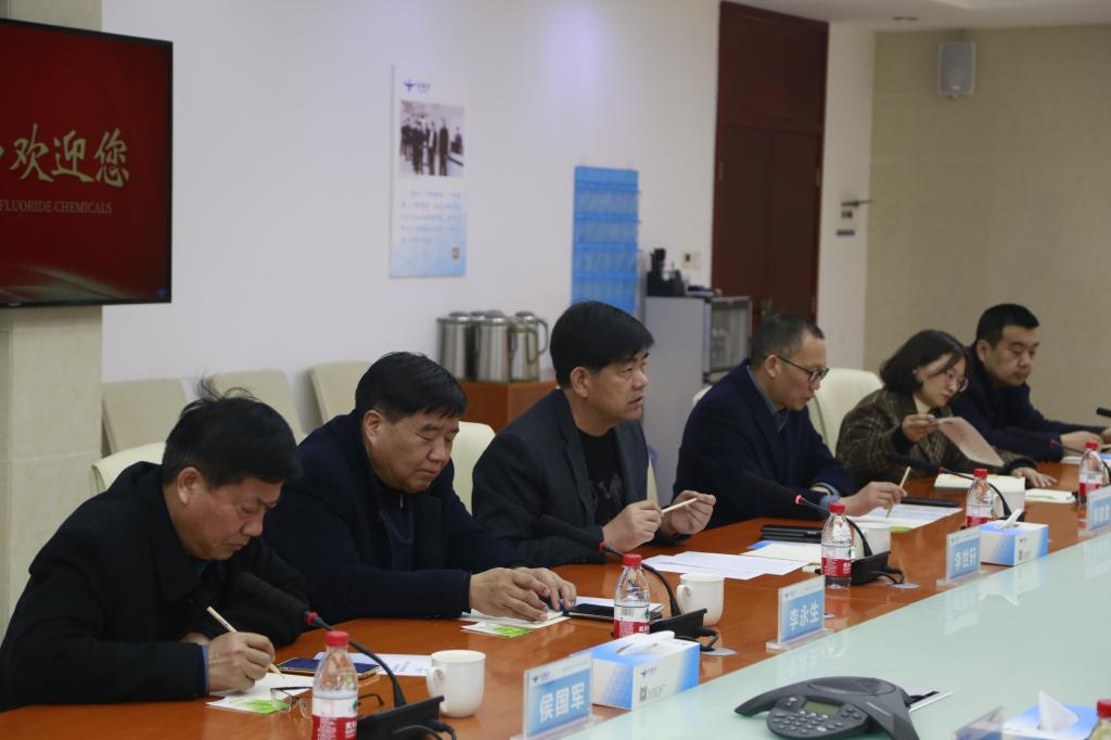 參觀之后,在多氟多科技大廈五樓會議室,校企雙方代表進行了座談。會上,李世軒首先致辭歡迎焦作大學考察團的來訪,他介紹了企業基本情況及合作意向,并希望雙方的合作能出特色、出實效。劉際平對公司的熱情接待表示感謝,提出雙方要在原有的合作基礎上,圍繞企業發展需求,結合學校“雙高建設”實際,進一步深入合作,達到雙贏。秦海金希望雙方要進一步解放思想,探索以產業學院模式開展新的合作,要以企業需求調整專業設置及人才培養方案,雙方要加強溝通,推進合作。