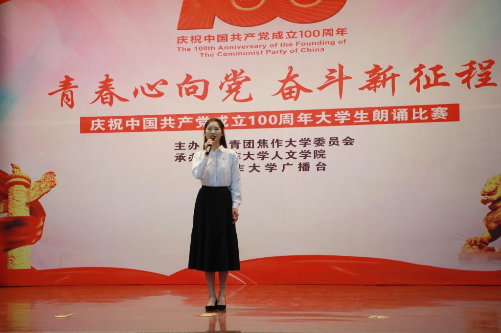 朗朗詩聲頌黨恩,禮贊百年迎華誕。決賽現(xiàn)場,選手們滿懷真摯的情感,用飽含激情的朗誦演繹詩歌,追憶百年黨史,禮贊學(xué)校發(fā)展,展望新時代美好生活;以文字傳達愛黨愛國之情,以語言訴說愛黨愛國之意;用敘事、抒情等多種表達方式訴說著對祖國母親、對中國共產(chǎn)黨的感激與熱愛,贏得臺下領(lǐng)導(dǎo)、評委和觀眾們的陣陣掌聲。