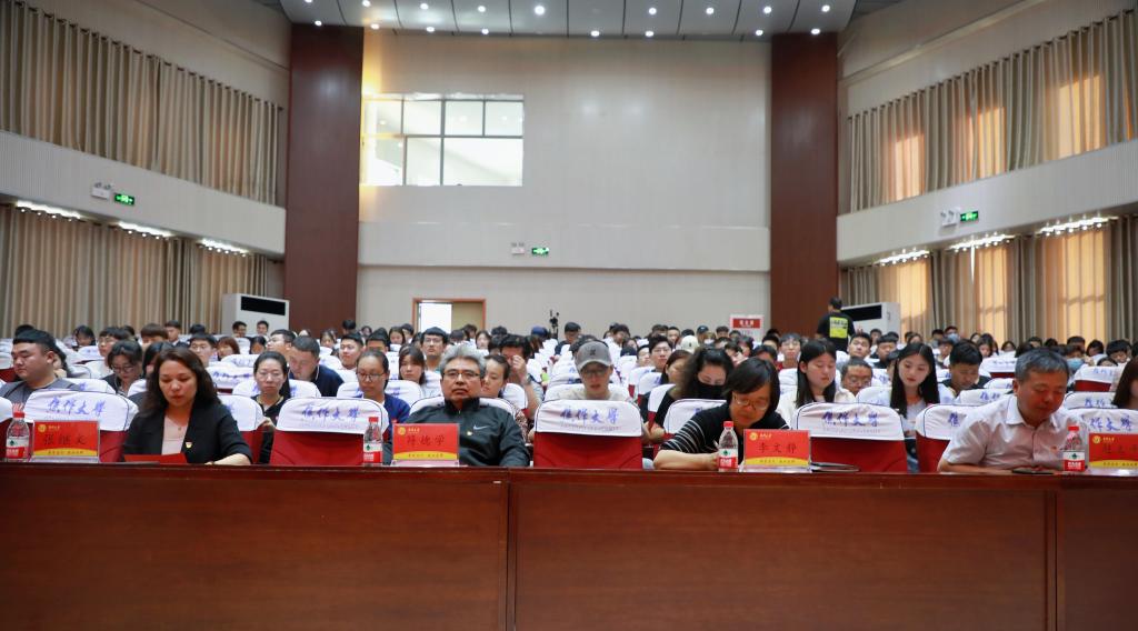 為深入推進黨史學(xué)習(xí)教育,慶祝建黨100周年,5月19日下午,由校團委主辦,人文學(xué)院、廣播臺承辦的慶祝建黨100周年大學(xué)生朗誦比賽決賽在學(xué)術(shù)報告廳舉行。校黨委副書記、工會主席符德學(xué),黨委委員、組織部長李文靜,黨委委員、宣傳統(tǒng)戰(zhàn)部部長張繼文,團委書記趙文平觀看了此次比賽。