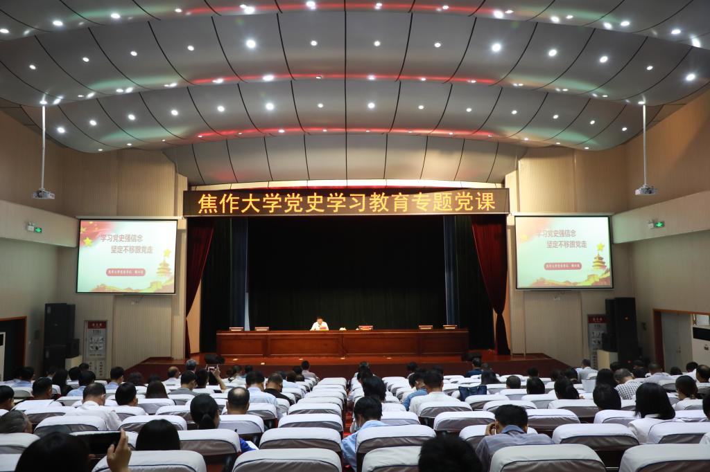 為推動學校黨史學習教育深入開展,按照市委黨史學習教育領導小組安排和校黨委統一部署,6月10日下午,校黨委書記魏曰高在南校區報告廳以“學習黨史強信念 堅定不移跟黨走”為題,為干部師生講授專題黨課。土木建筑工程學院、黨政辦公室黨支部全體黨員,全校正科級以上黨員領導干部、部分學生黨員代表參會。市委黨史學習教育第六巡回指導組副組長、市引沁局黨委委員許洪州和市審計局辦公室三級主任科員蔣小宇蒞臨旁聽。黨課由校黨委副書記、工會主席符德學主持。