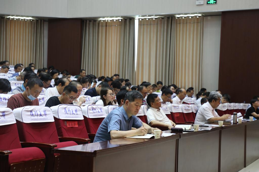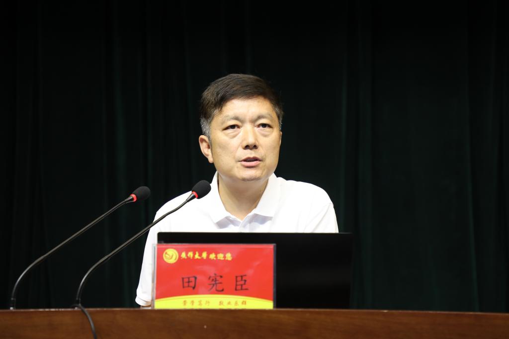 為進(jìn)一步學(xué)習(xí)好、領(lǐng)會好、貫徹好習(xí)近平總書記在慶祝中國共產(chǎn)黨成立100周年大會上的重要講話精神,7月14日下午,我校舉辦學(xué)習(xí)貫徹習(xí)近平總書記“七一”重要講話精神專題宣講報告會,邀請河南省委黨校哲學(xué)教研部主任田憲臣教授作宣講報告。報告會由校黨委副書記、工會主席符德學(xué)主持。學(xué)校領(lǐng)導(dǎo)、副科級以上干部200余人參加報告會。