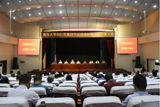 9月10日下午,為慶祝第37個教師節,學校在南校區報告廳召開2021年教師節慶祝表彰暨工作部署大會。全體校領導、學校正科級(含)以上干部、先進集體、教學名師、先進標兵、優秀教師和優秀教育工作者代表參加會議。會議由黨委副書記、工會主席符德學主持。