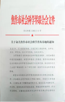 近日,焦作市社會科學界聯(lián)合會辦公室印發(fā)《關于命名焦作市社會科學普及基地的通知》(焦社科聯(lián)[2021]11號)。我校心理咨詢中心入選焦作市社會科學普及基地。