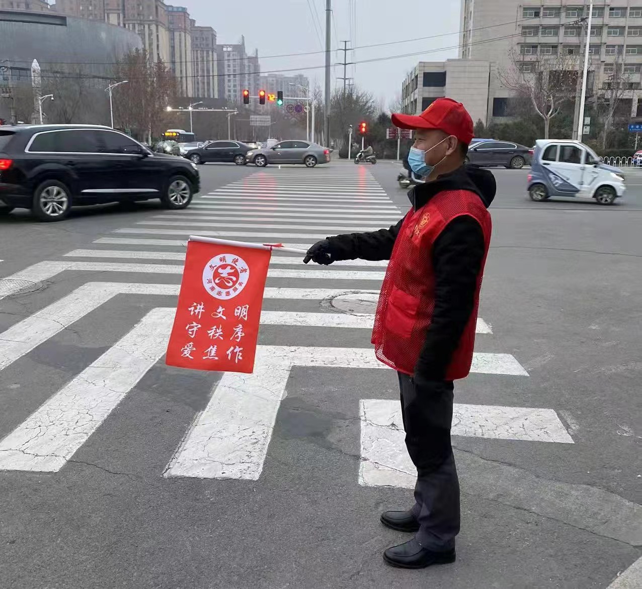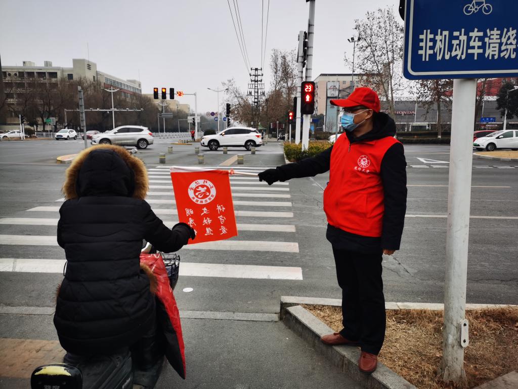 此次志愿服務活動針對豐收路長恩路口、人民路山陽路口等四個交通路口進行文明交通勸導。活動中教師志愿者們利用手中的小紅旗,在早晚高峰準時上崗,宣傳交通法規、維護交通秩序,對行人亂闖紅燈、不走人行橫道、占道行駛、騎電動車不佩戴安全頭盔等不文明交通行為進行規勸。