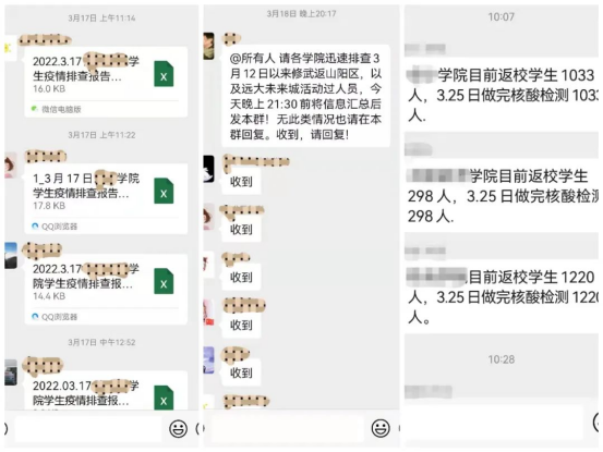 二是細致摸排,精準施策。嚴格執行“日報告、零報告”的要求,利用四級網格制度,每日全面精準摸排及上報學生疫情情況和核酸檢測情況。為了及時掌握學生情況、精準上報學生信息、將學校通知告知到每一位學生,全體學工人員加班加點,確保做到全覆蓋、無死角。