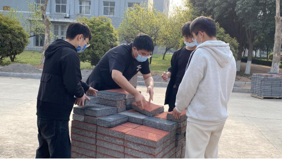 在輔導(dǎo)員老師的帶領(lǐng)下,大家發(fā)揚(yáng)“特別能戰(zhàn)斗”精神,無懼辛苦,協(xié)力配合,分組施工。拉沙組、鏟灰組、搬磚組、清理垃圾組各司其職,“后援”和“技師”各就其位。師生們以比賽的標(biāo)準(zhǔn),開展了學(xué)以致用的專業(yè)實(shí)踐,圓滿完成了任務(wù),恢復(fù)了暢通潔凈、方便出行的安全道路。