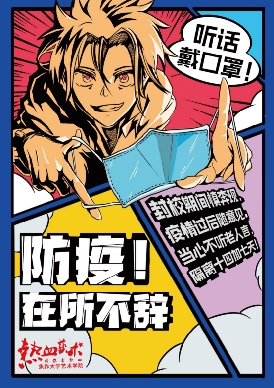 為進一步提高學生的防控意識和衛生安全意識,展現藝術學院學子的風采,活躍封校期間校園生活,藝術學院倡議廣大師生主動以手中畫筆,為疫情防控繪制宣傳海報。