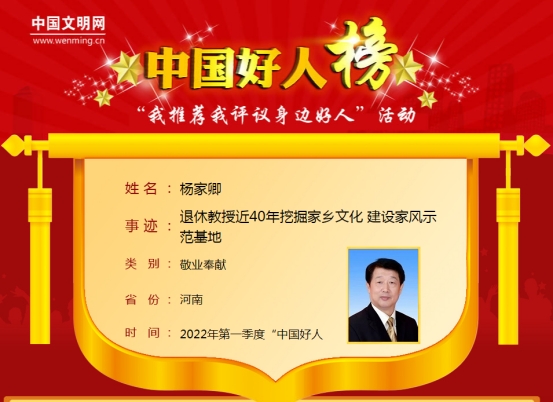 我校退休教授楊家卿榮登2022年第一季度“中國(guó)好人榜”