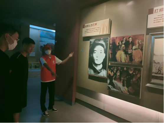 在焦裕祿紀念館,實踐隊員何固義務擔任講解員,為游客講解焦裕祿同志帶領蘭考人民治理內澇、風沙、鹽堿,努力改變蘭考貧困面貌的光輝事跡。