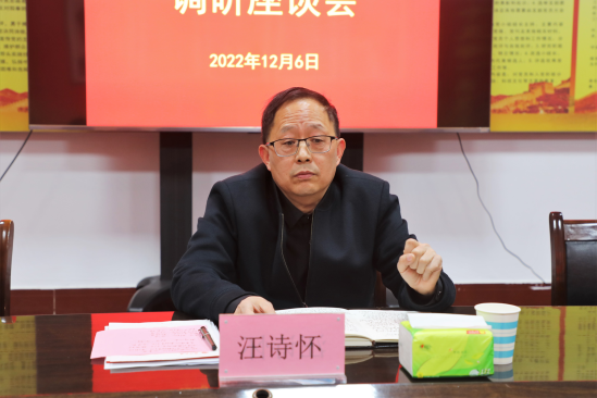 12月6日下午,校黨委書記汪詩懷到馬克思主義學院調研指導工作。黨委委員、黨政辦公室主任林五星,黨委委員、組織部長李文靜以及黨委宣傳統戰部、教務處工作人員陪同調研。座談會由馬克思主義學院黨總支書記張育琳主持,馬克思主義學院院長李世偉和班子成員、教研室主任及部分教師代表參加了座談會。